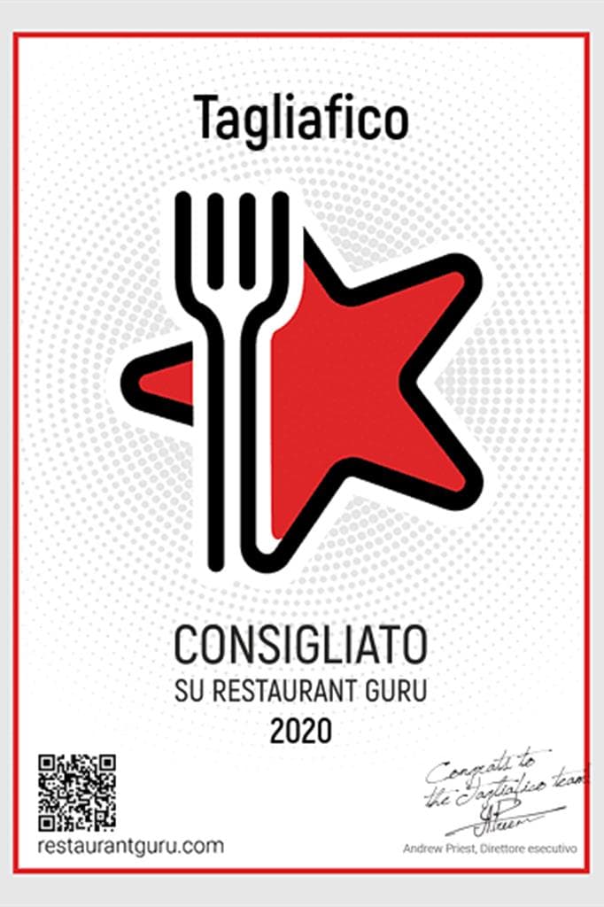 Ma le buone notizie non finiscono qui. Anche quest’anno abbiamo ricevuto il badge di Raccomandazione di Restaurant Guru. Uno speciale riconoscimento che abbiamo conquistato grazie alle tante recensioni positive con cui avete premiato la qualità dei nostri prodotti e del servizio.