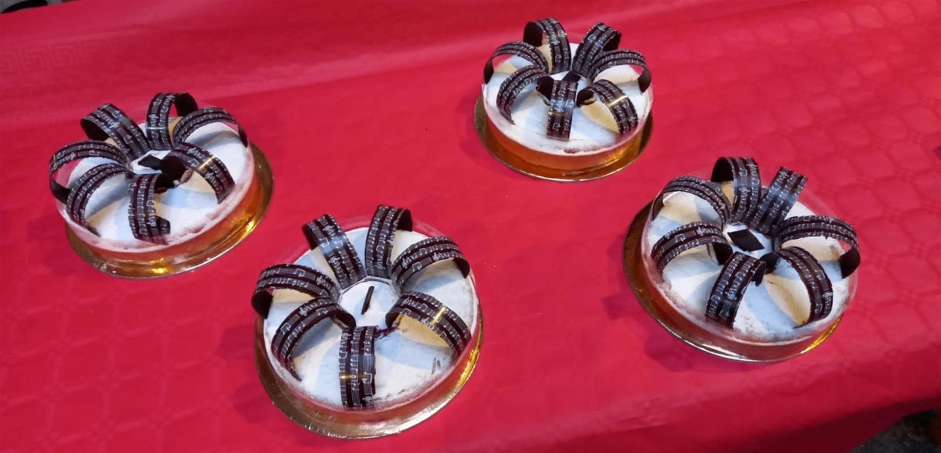 Mancava ancora un dettaglio per completare la torta. Serviva nel vero senso della parola “una nota finale”. Siamo riusciti a materializzare quello che è un semplice modo di dire con un pentagramma di cioccolato fondente decorato da note musicali.