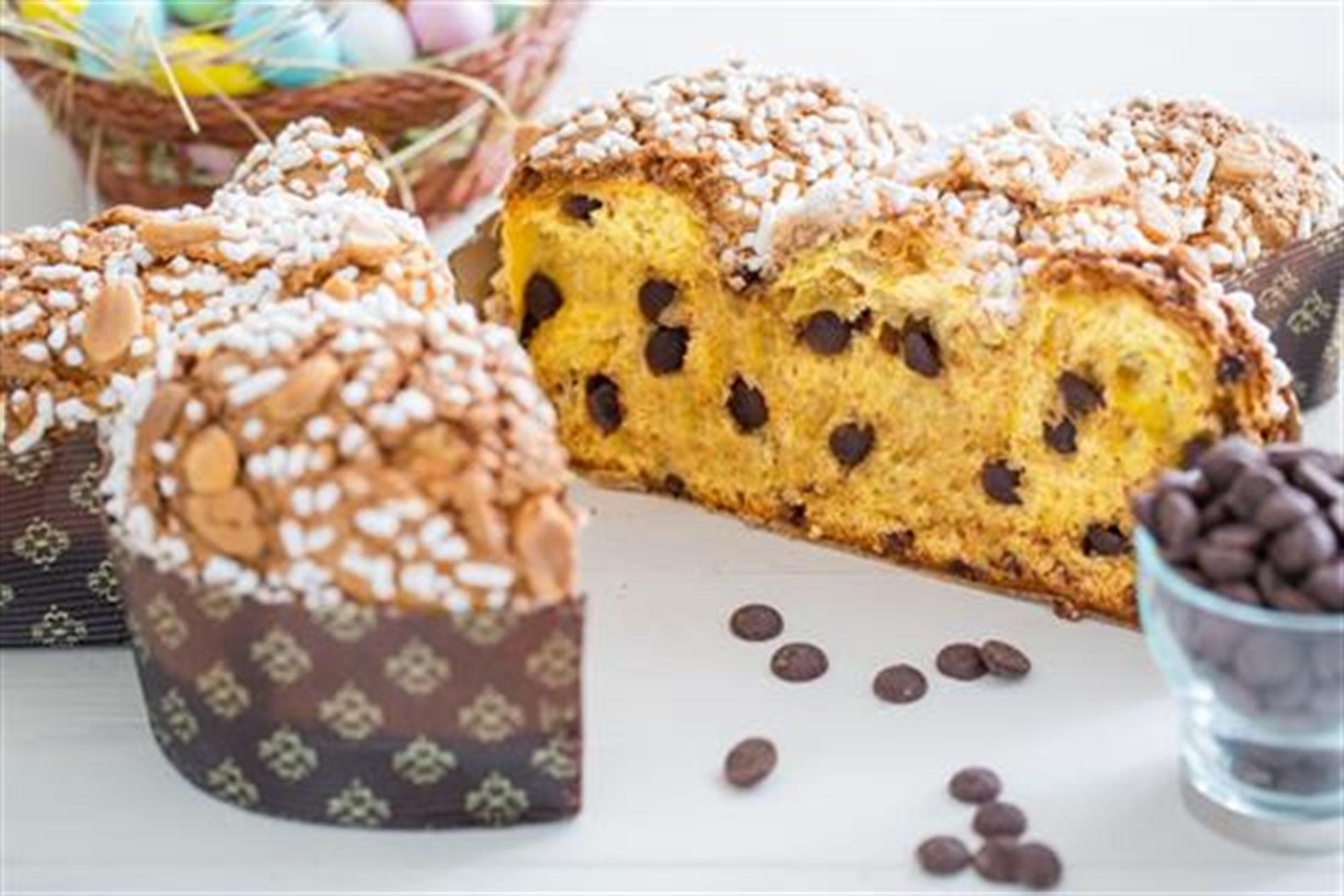 La colomba pasquale farcita di cioccolato fondente offre un tocco di originalità grazie all’impasto farcito con gocce di cioccolato fondente, che sostituiscono la frutta candita e le uvette.