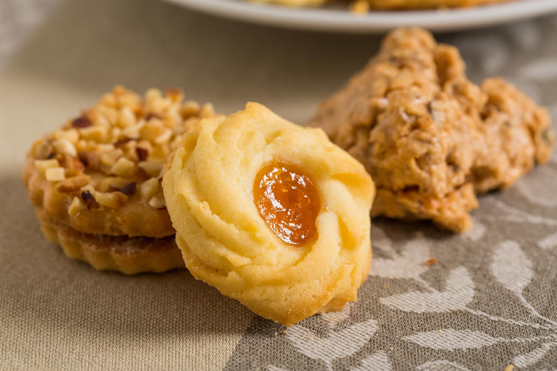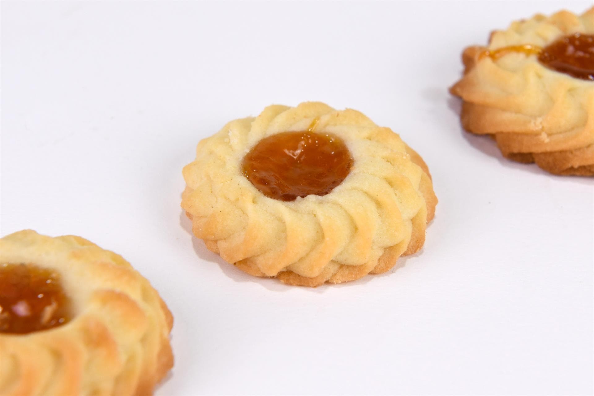 E’ dalla ricetta di questo dolce che abbiamo ideato il frollino Linzer, una pasta frolla montata alla scorza d’arancio e guarnita con una goccia di confettura di albicocca.
