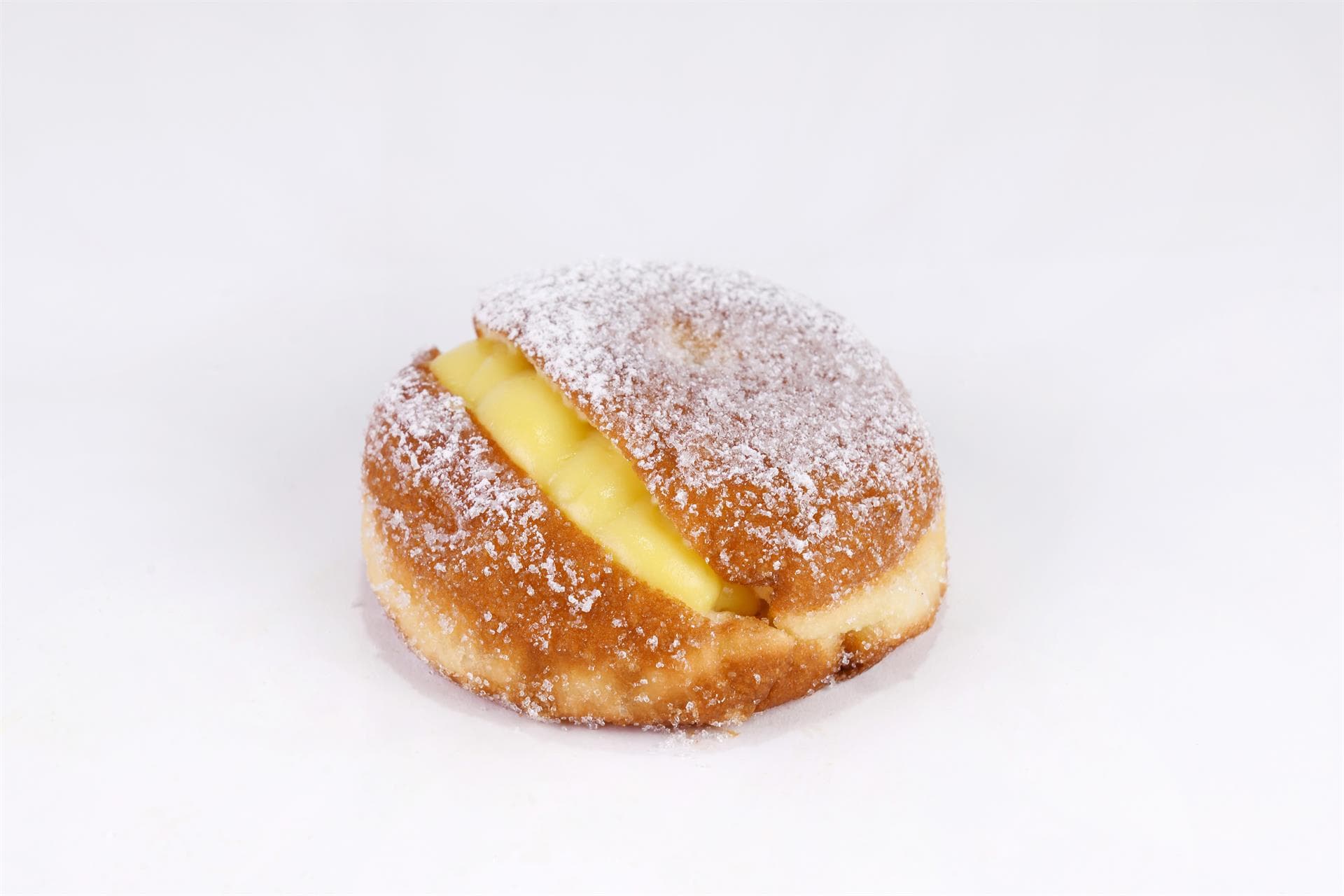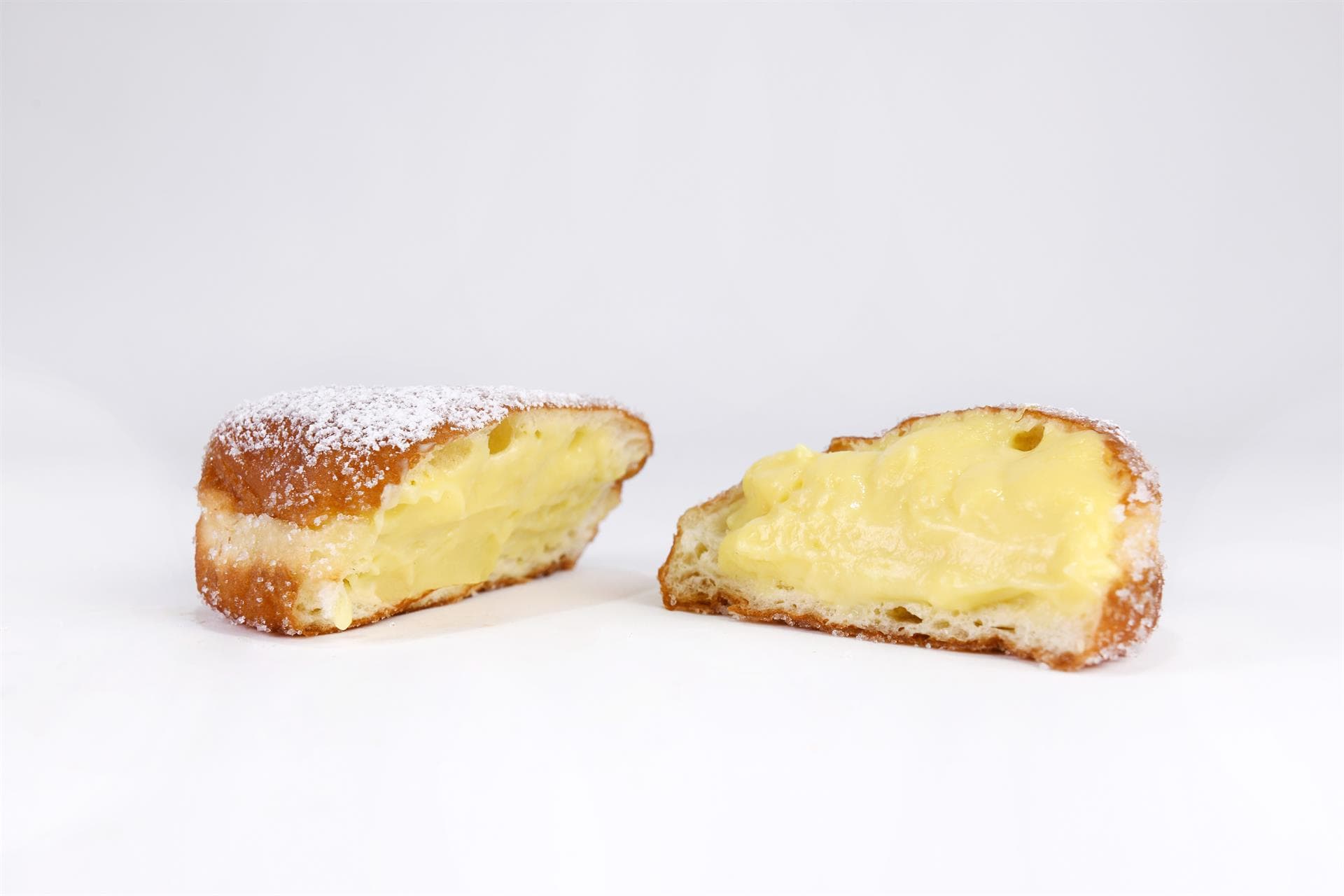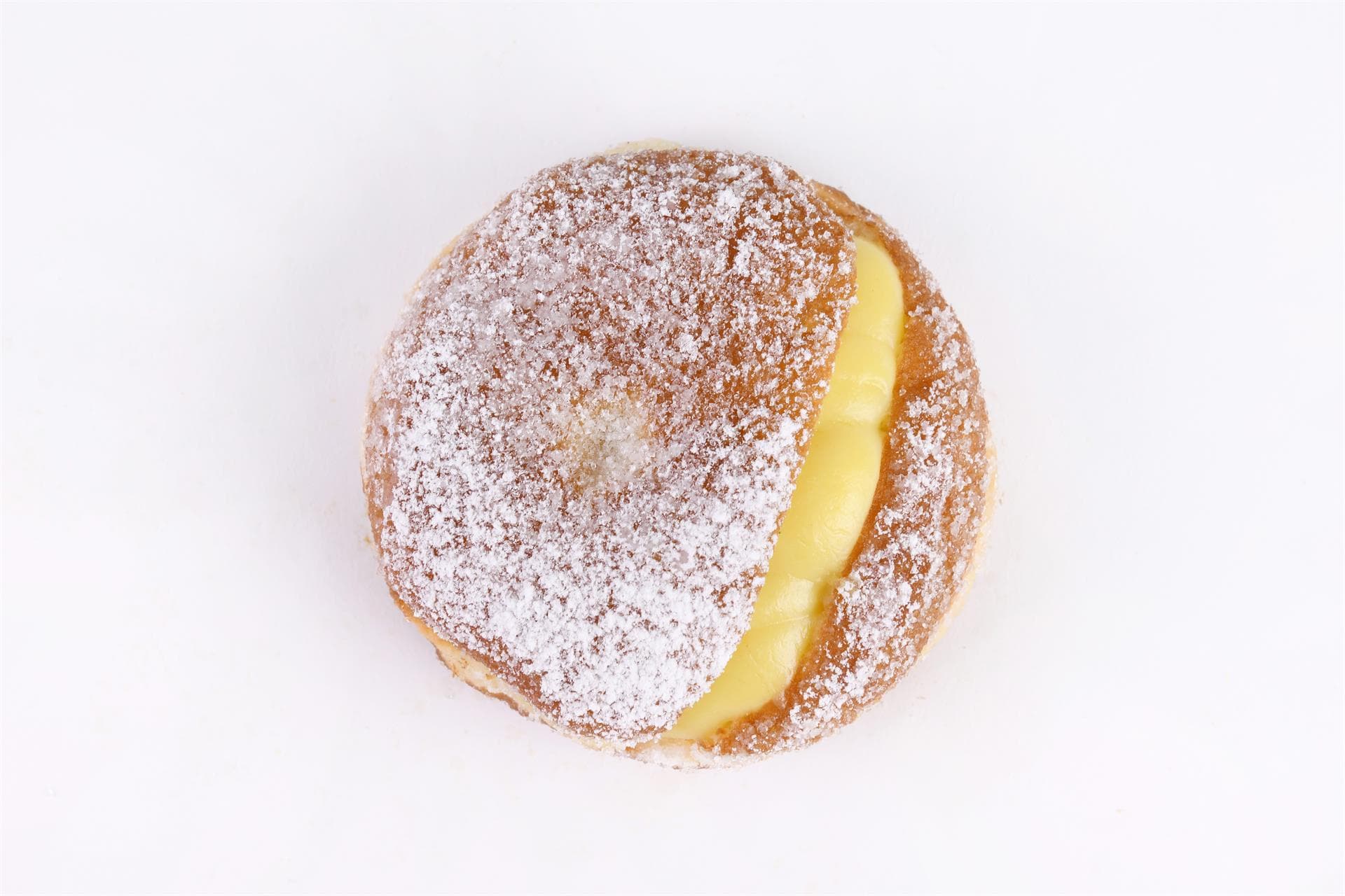 classico, farcito di crema pasticcera alla vaniglia e limone o, solo su richiesta e al momento, di panna montata.