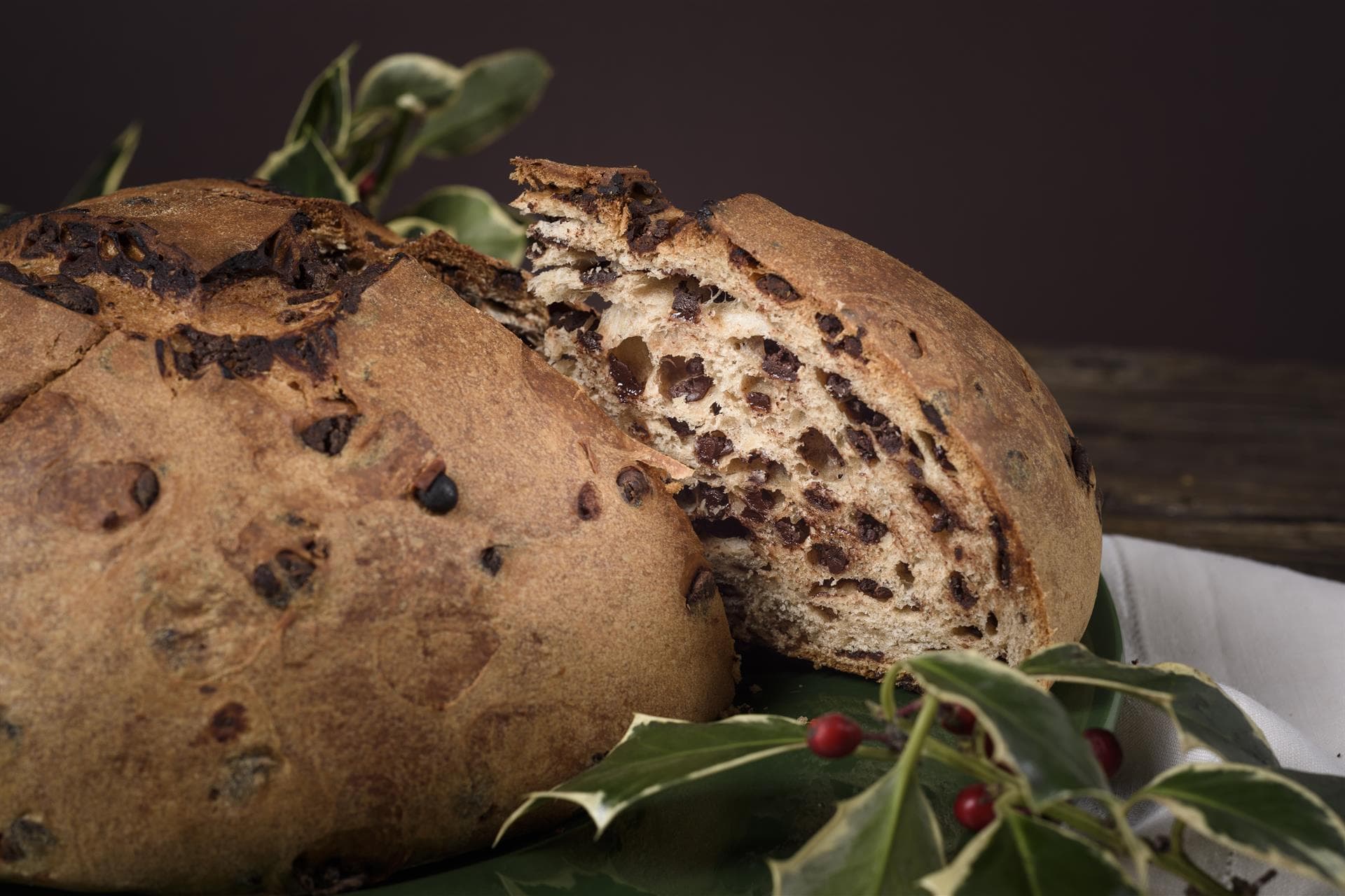 Il caratteristico impasto fragrante e aromatico, prodotto con il lievito madre che la nostra famiglia lavora da oltre un secolo, è arricchito con gocce di puro cioccolato fondente del Venezuela che sostituiscono la tradizionale farcitura a base di pinoli, uvetta e frutta candita.