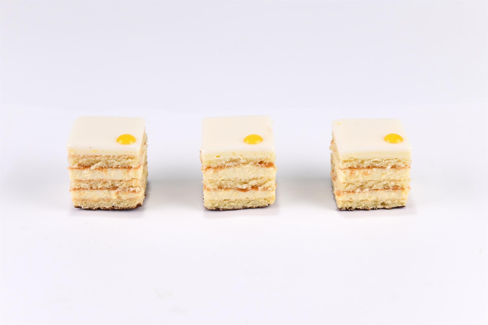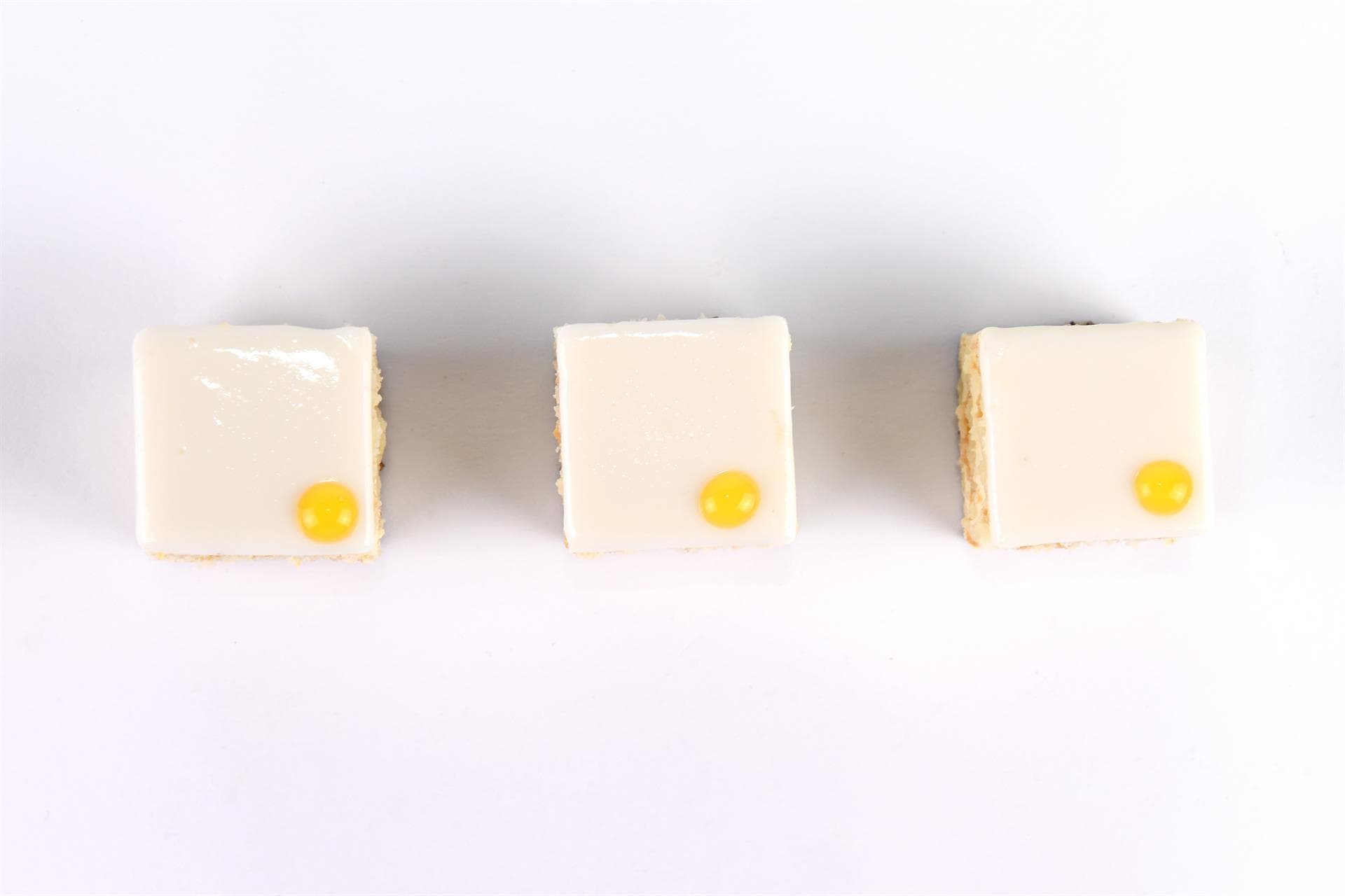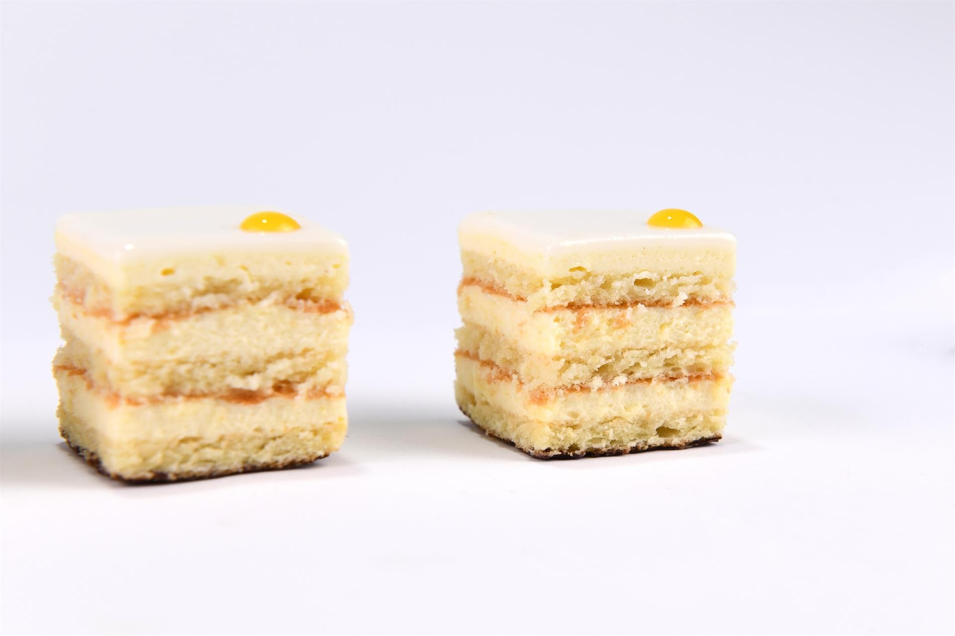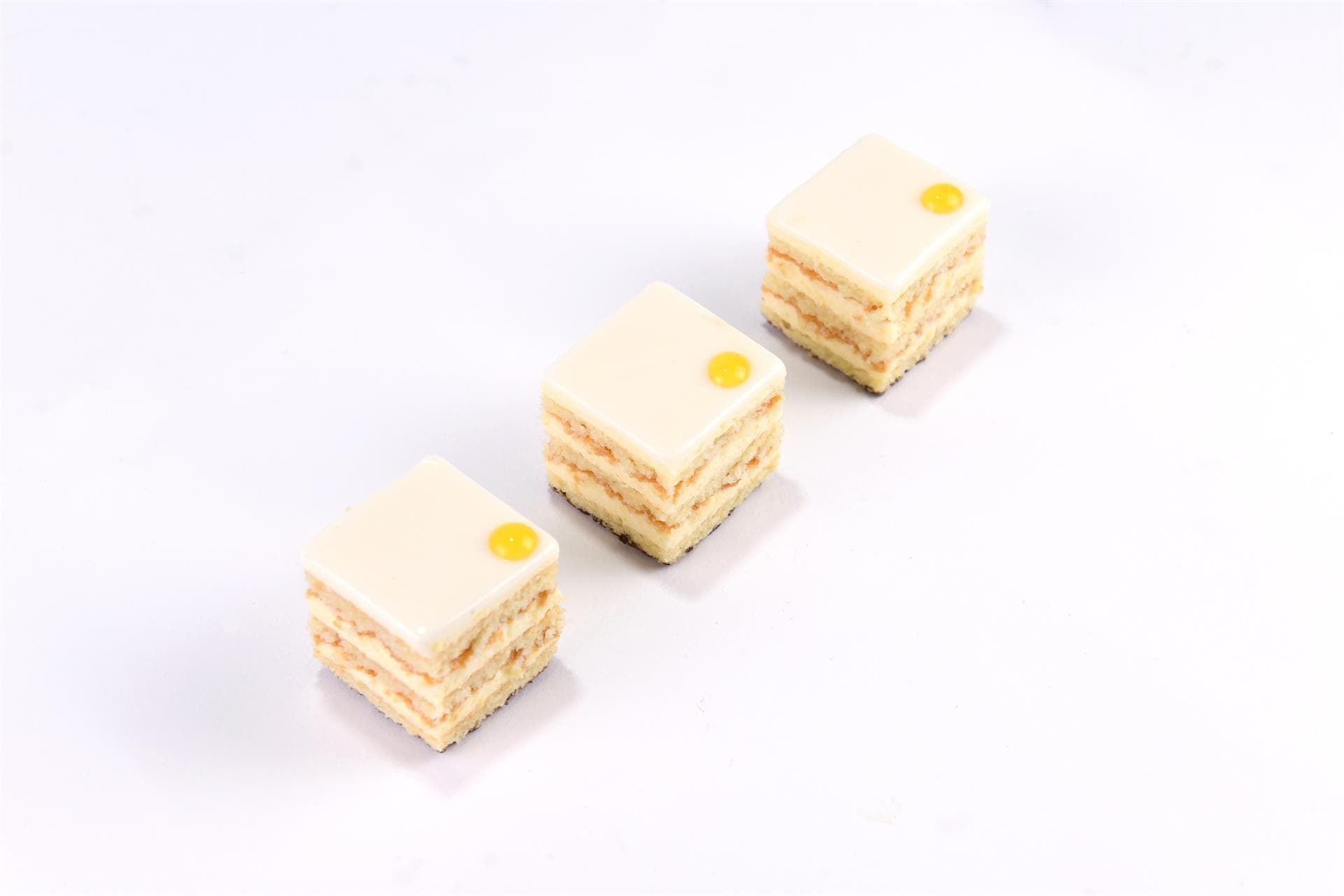 Questo pasticcino è composto da tre strati di Biscuit Joconde, un morbido biscotto alle mandorle, alternati a una mousse leggera preparata con il succo e la scorza dei limoni Costa d’Amalfi, prodotto IGP fra i più pregiati.