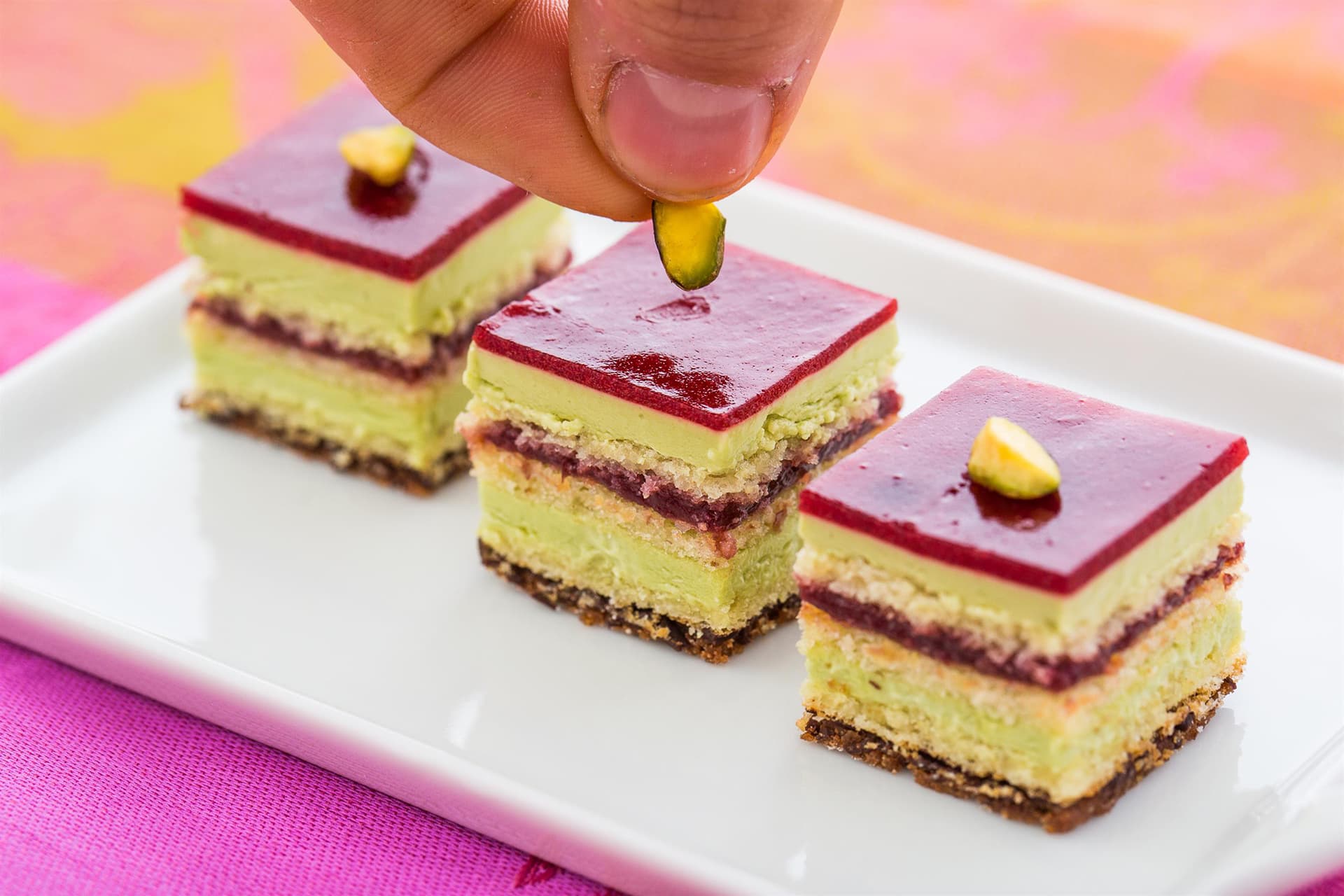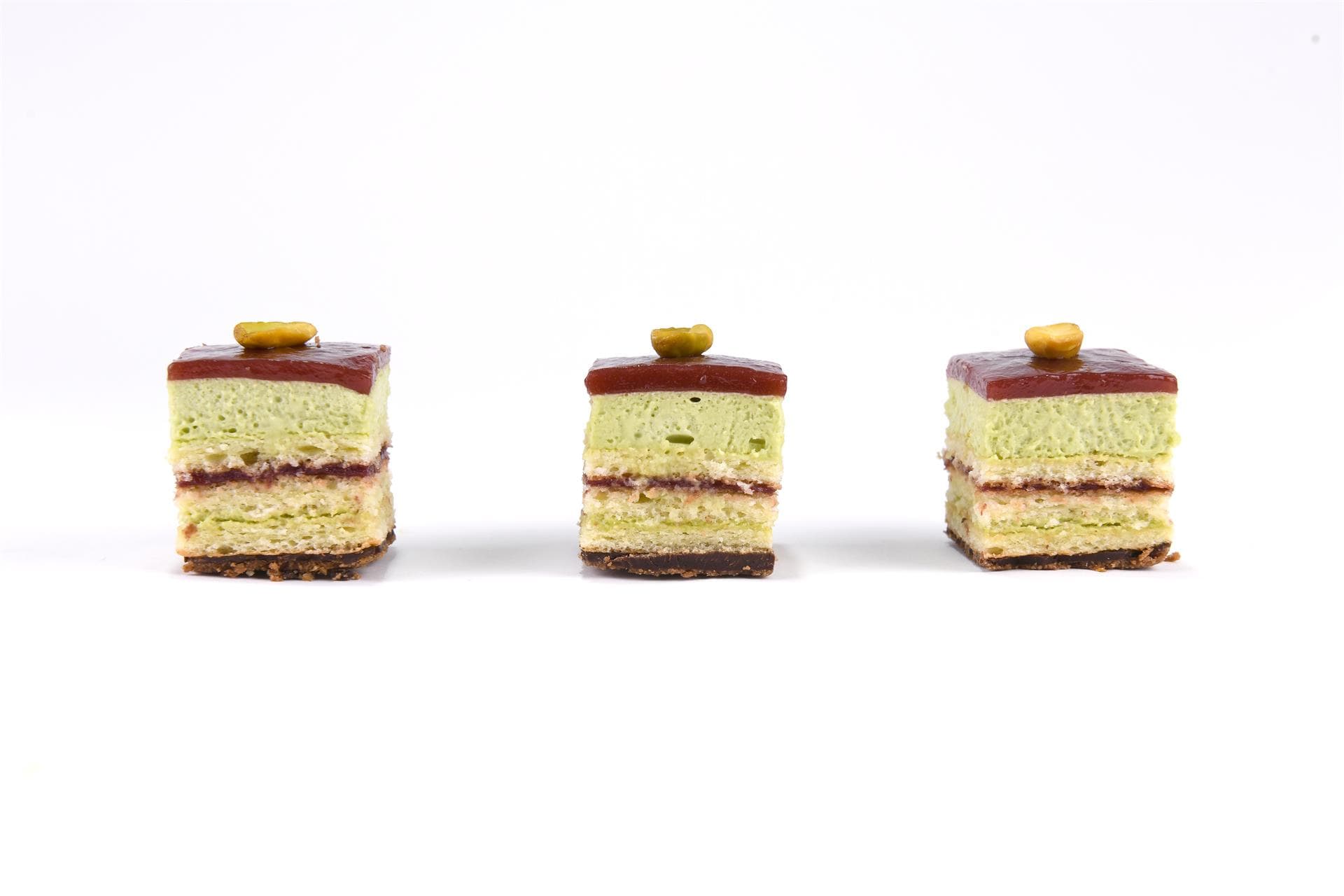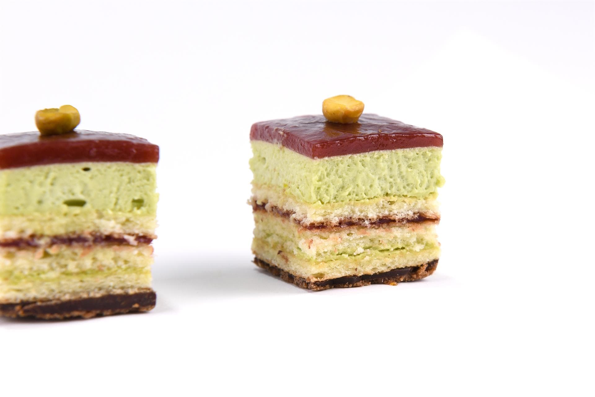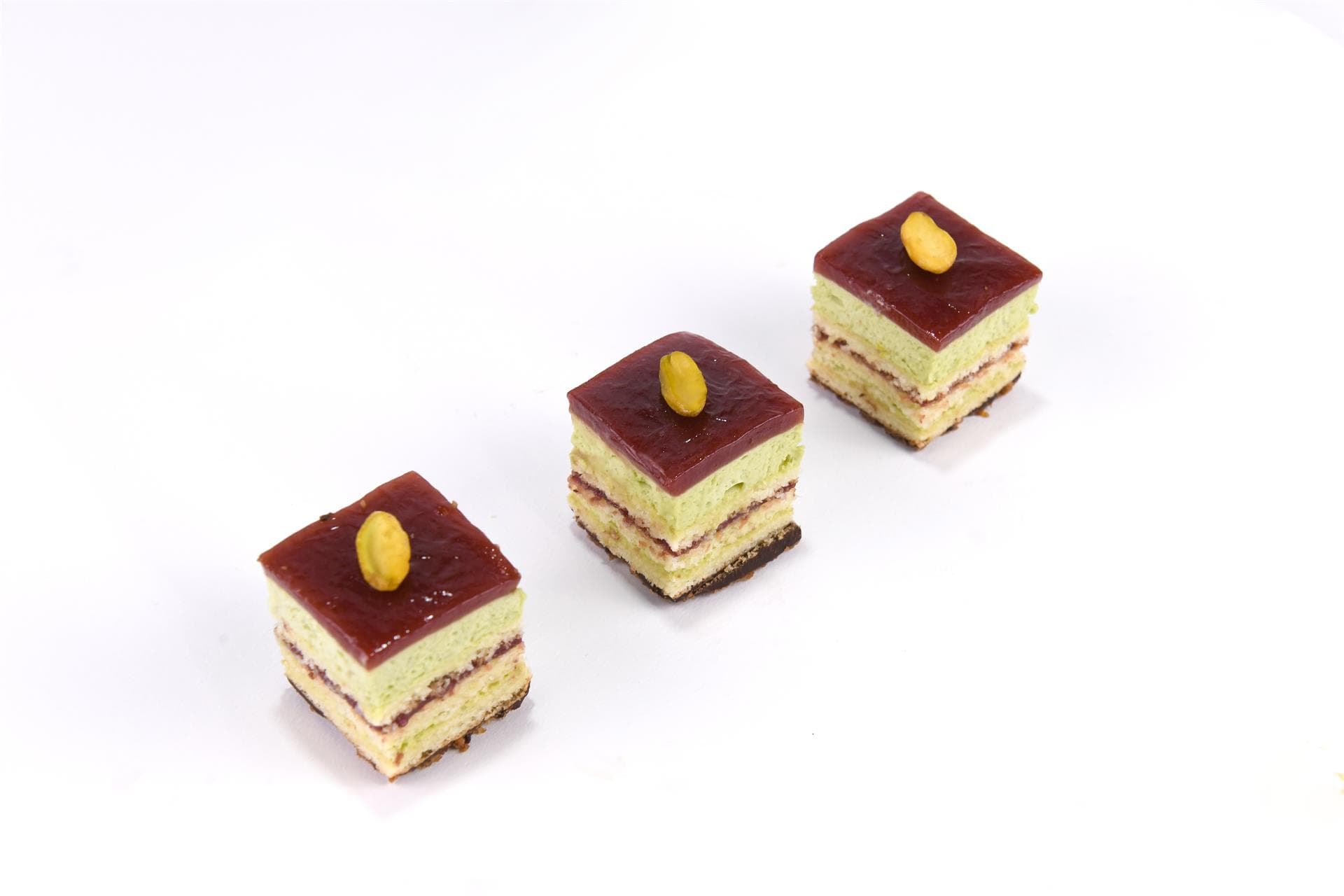 Una delle ultime novità di Filippo: croccantino, crema imperiale al pistacchio, morbido biscuit alla vaniglia e coulis ai frutti rossi.