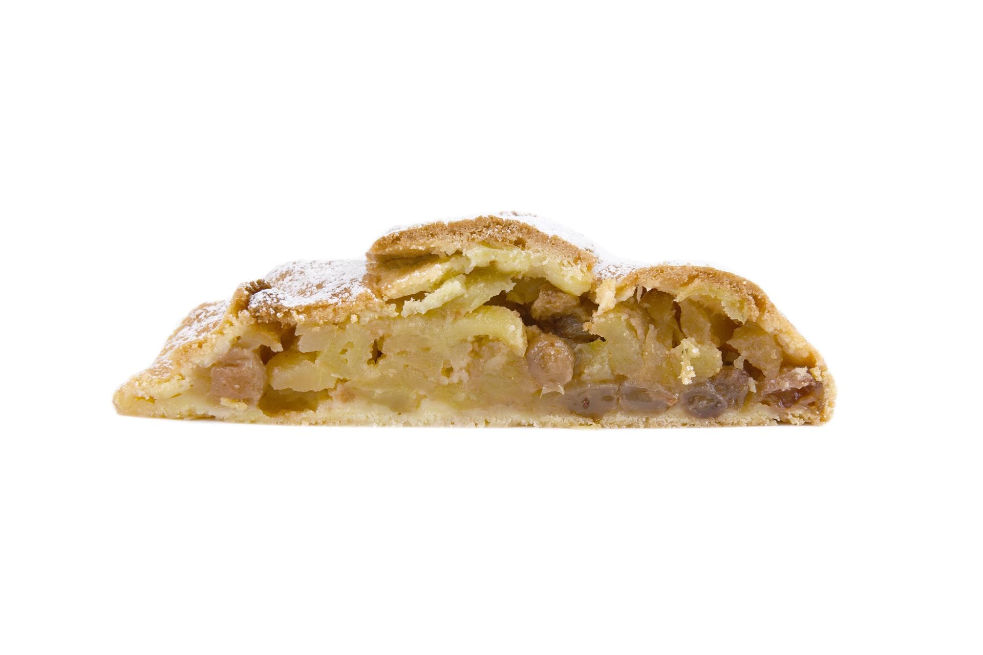 Da una ricetta originale della Val Pusteria, il nostro strudel si racconta con pasta frolla, mele, uvetta e 2 segreti. Vi consigliamo di metterlo 5 minuti in forno caldo ma spento per poterlo consumare appena tiepido.