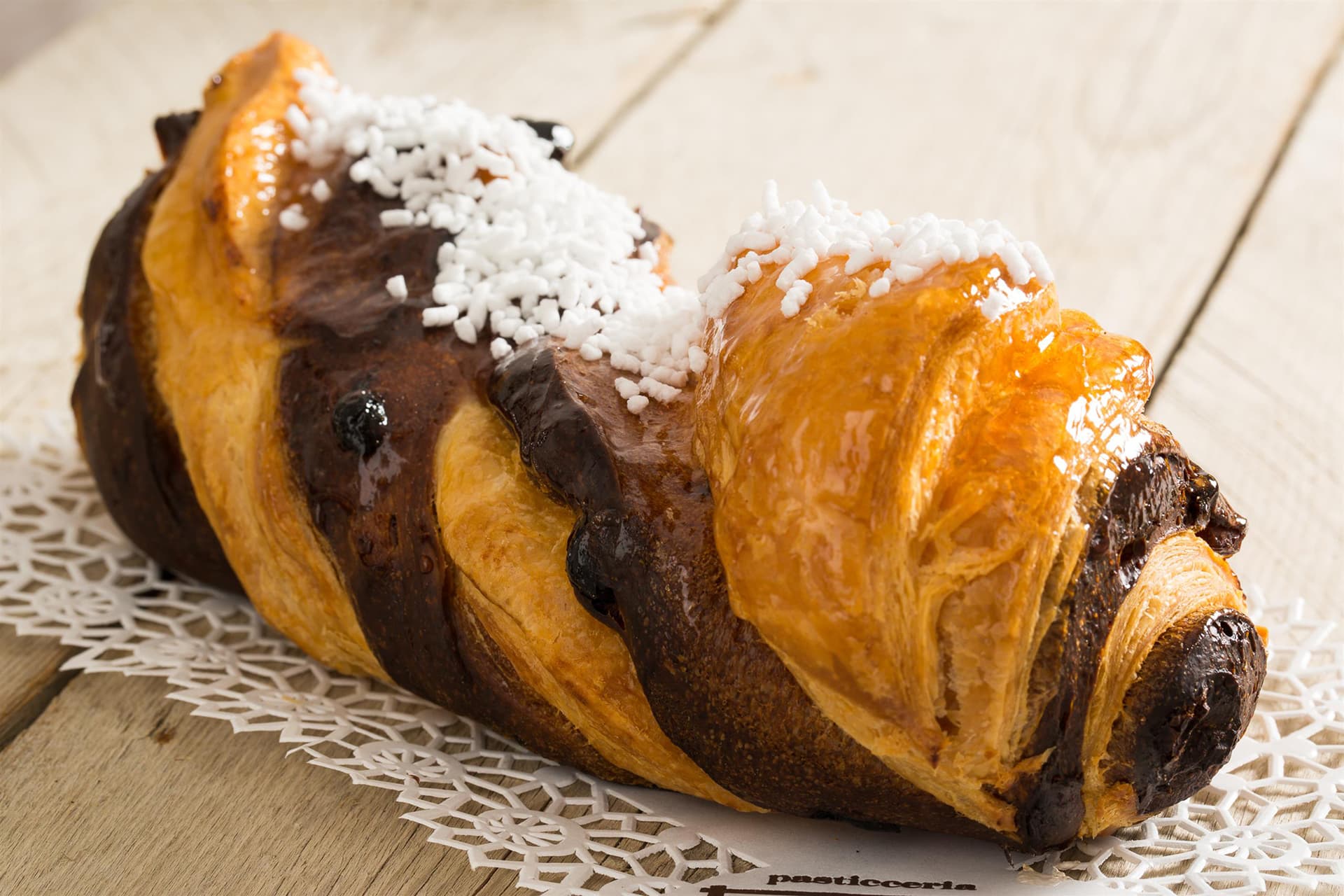E’ preparato avvolgendo a spirale un impasto di sfoglia e uno di brioche che gli donano il caratteristico aspetto di una treccia bicolore.